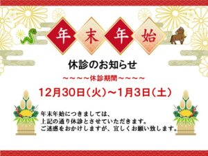 年末年始の診療につきまして、下記の期間を休診とさせていただきます。